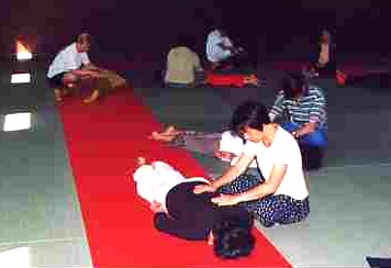 Puis on choisit un partenaire et avec un léger contact physique par la paume des mains, au niveau de la colonne vertébrale, l’un se concentre sur l'expiration, l'esprit vide, sans intention particulière, pendant que l’autre reçoit.